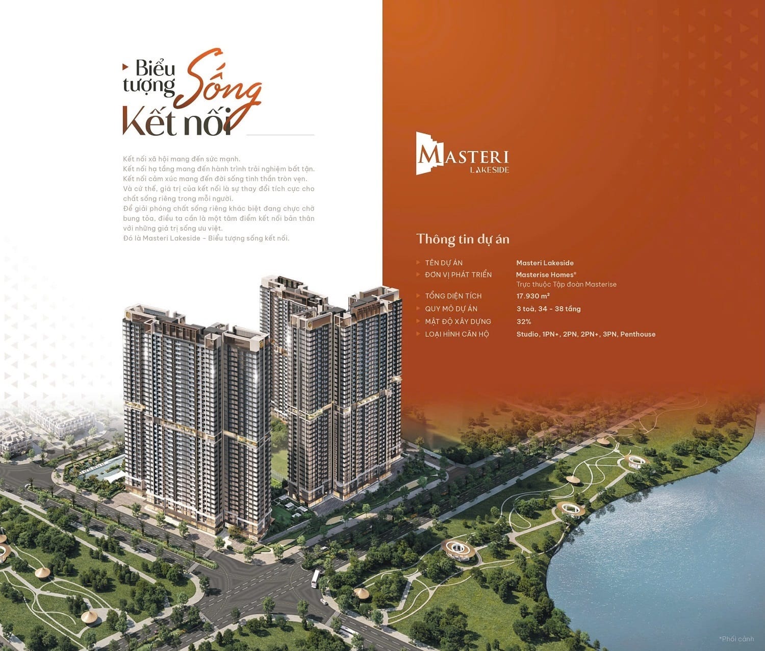 Masteri Lakeside là dự án cuối cùng thuộc bộ sưu tập căn hộ Masteri Collection và là một trong những mảnh ghép hoàn thiện Thành phố biển Ocean Park, Gia Lâm, Hà Nội. Sở hữu thiết kế hiện đại, nội thất sang trọng và hệ tiện ích chuẩn mực, căn hộ Masteri Lakeside thực sự là không gian sống đẳng cấp và tiện nghi bậc nhất tại Đại đô thị Ocean City