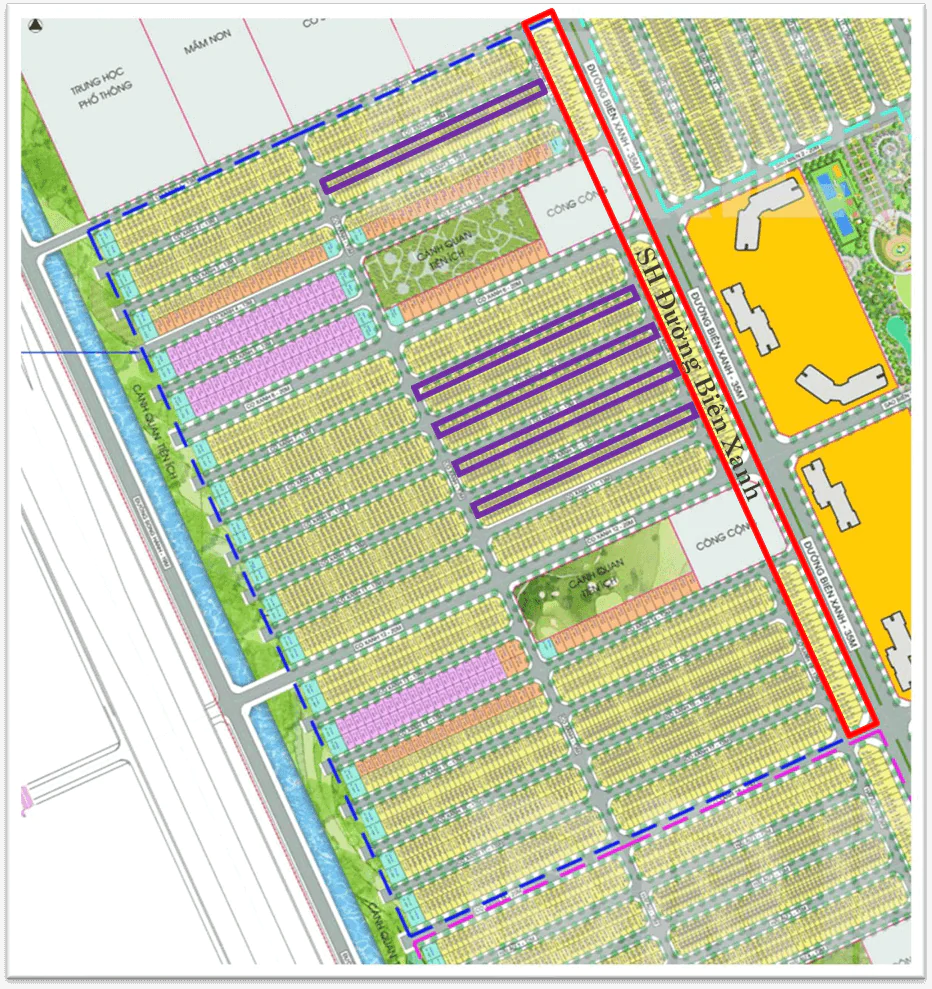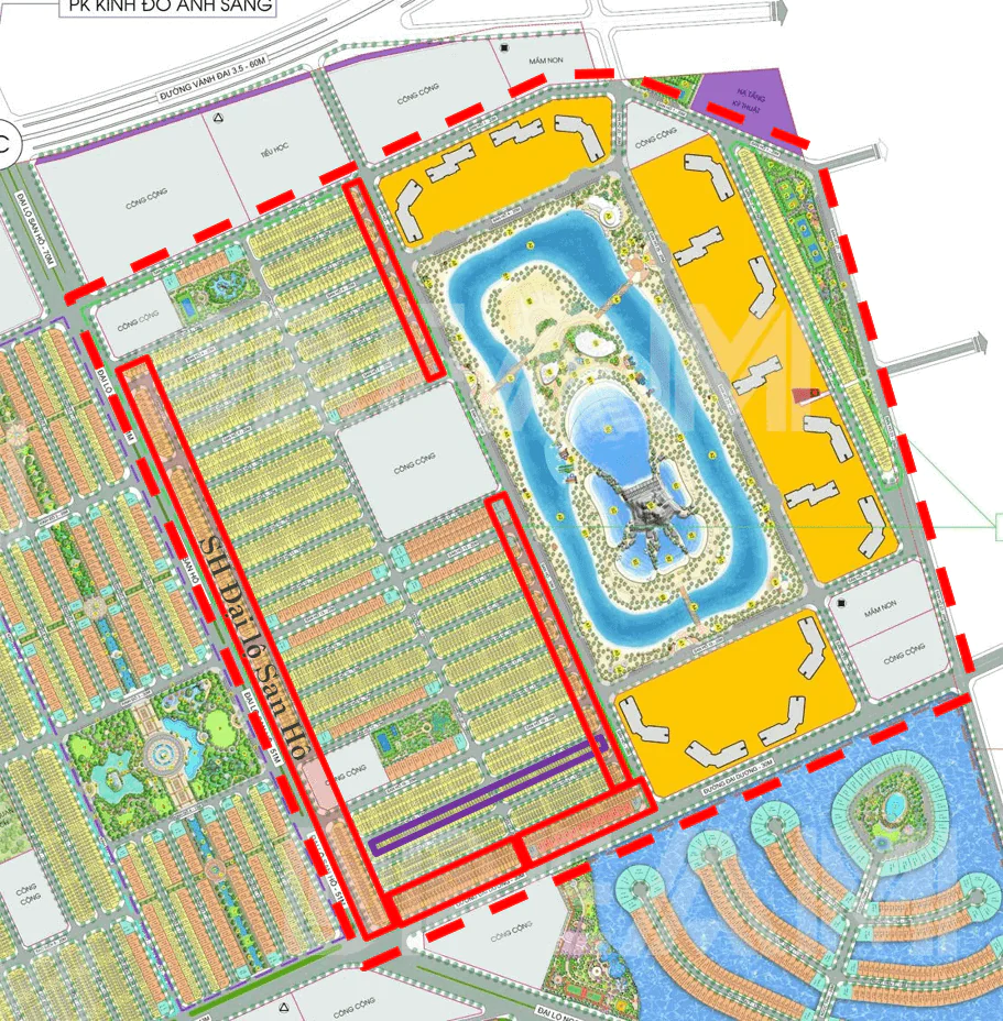 – Có một số dãy biệt thự song lập 127.5m2 xen kẽ các dãy LK, đầu dãy là các căn Đơn lập 217-241m2